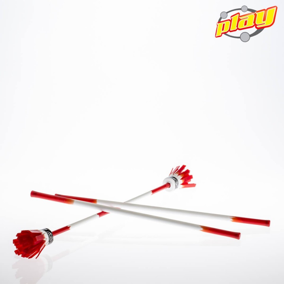 6 mm Glasfaser. Nahe zu unzerbrechlich, für Drehungen geeignet und dennoch reaktiv wie eine Feder, wenn sie in dymanischen Performances getreten oder geworfen werden. 2 mm dicker Anti-Schnitt-SILIKONGRIFF auf Glasfaser geformt. Bunte SILIKONBLUMEN extrem weich und elastisch für großartige visuelle Effekte.
