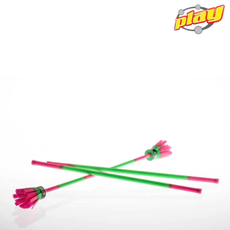 6 mm Glasfaser. Nahe zu unzerbrechlich, für Drehungen geeignet und dennoch reaktiv wie eine Feder, wenn sie in dymanischen Performances getreten oder geworfen werden. 2 mm dicker Anti-Schnitt-SILIKONGRIFF auf Glasfaser geformt. Bunte SILIKONBLUMEN extrem weich und elastisch für großartige visuelle Effekte.