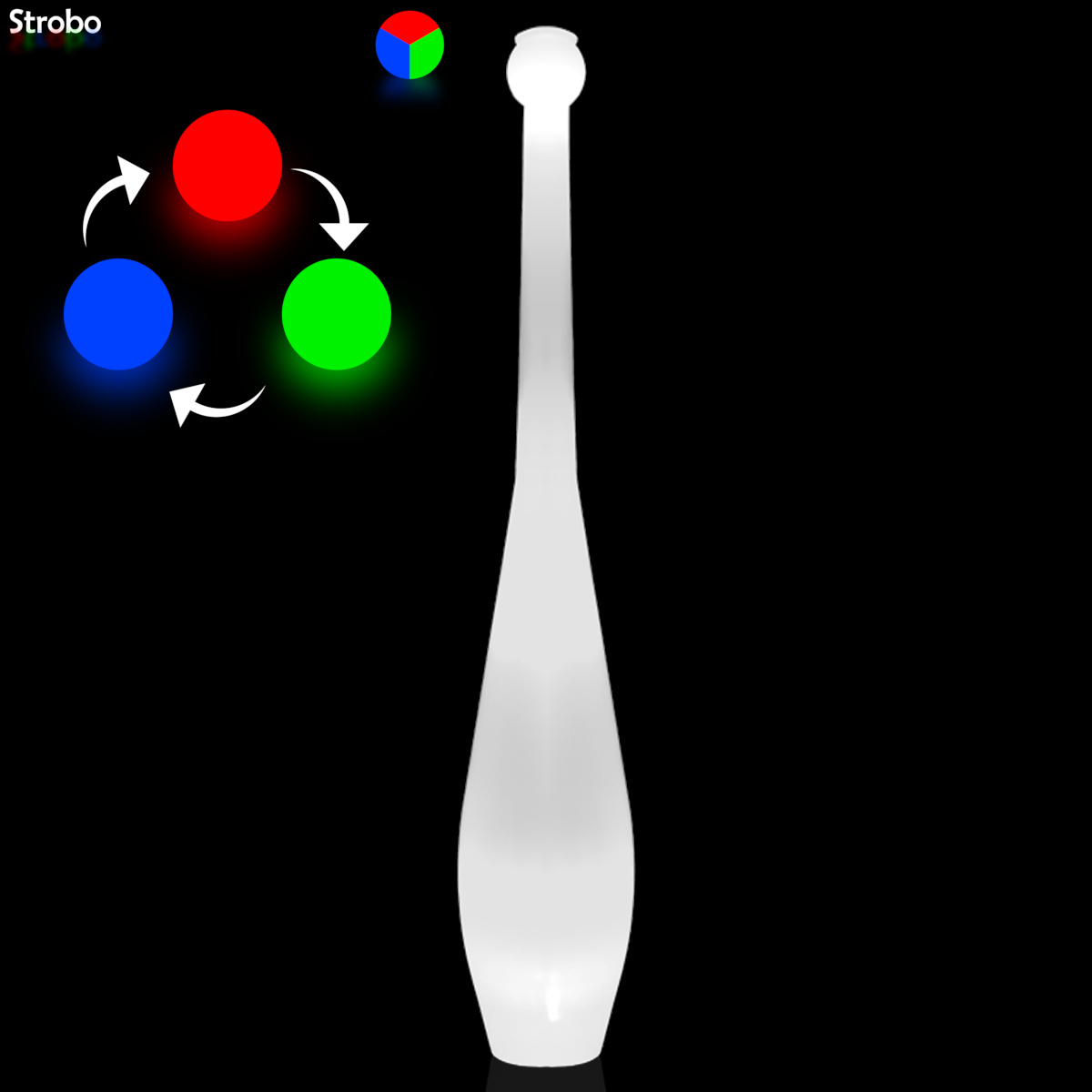Das perfekte Requisit für Eure LED-Performance. Die 2 LED-Module sind in 7 leuchtenden Farben sowie Strobo und Farbwechsel erhältlich. Die Lichtstreuung ist großartig und gleichmäßig. Mit Abstand die beste LED-Keule in dieser Preisklasse. Jedes LED-Modul wird mit 3 LR43-Batterien geliefert und leuchtet damit für 4-5 Stunden.