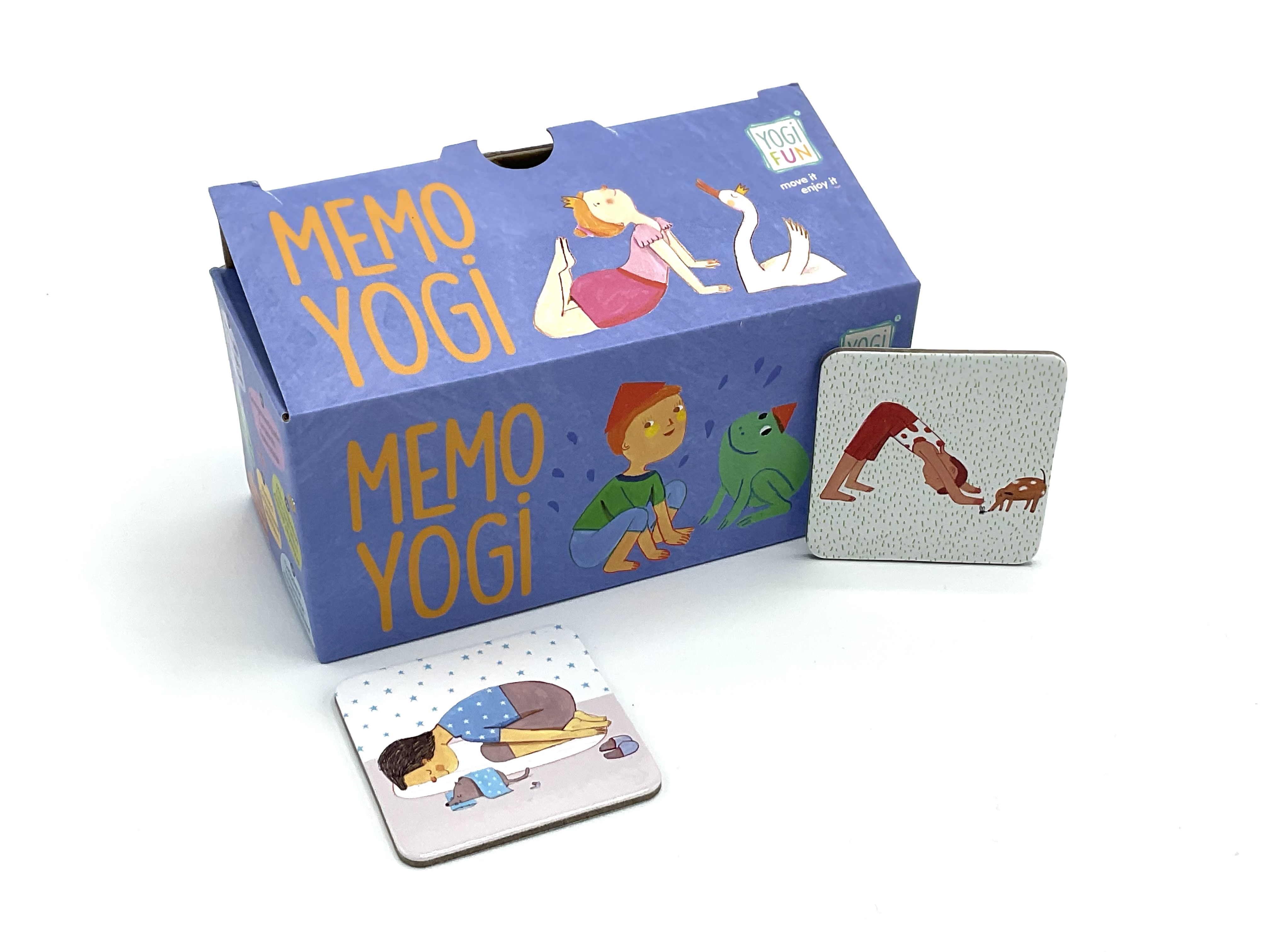 - Basierend auf dem bekannten Zuordnungsspiel „Memory“, aber mit dem zusätzlichen Vorteil, Yoga-Posen und -Sequenzen zu lernen